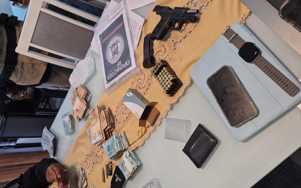 | Dinheiro, armas e documentos foram apreendidos durante operação — Foto: Ministério Público da Bahia |
